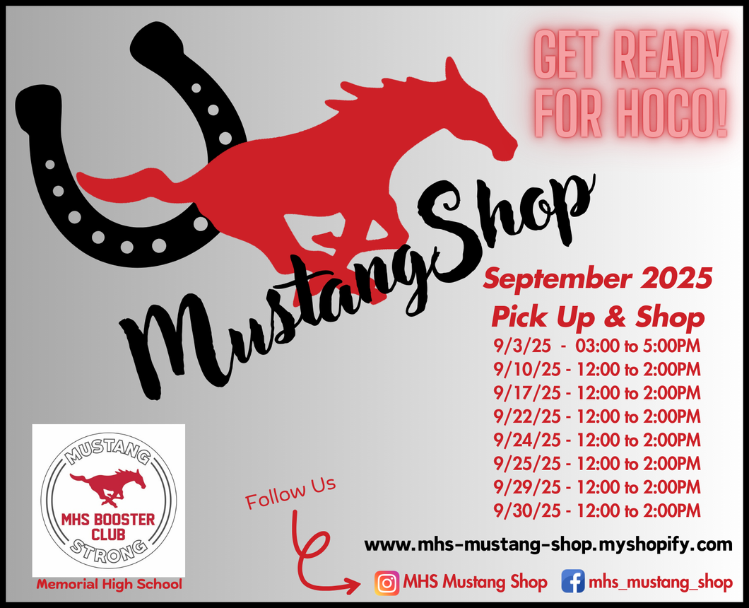 The Mustang Shop opens at Most MHS Events on Campus.