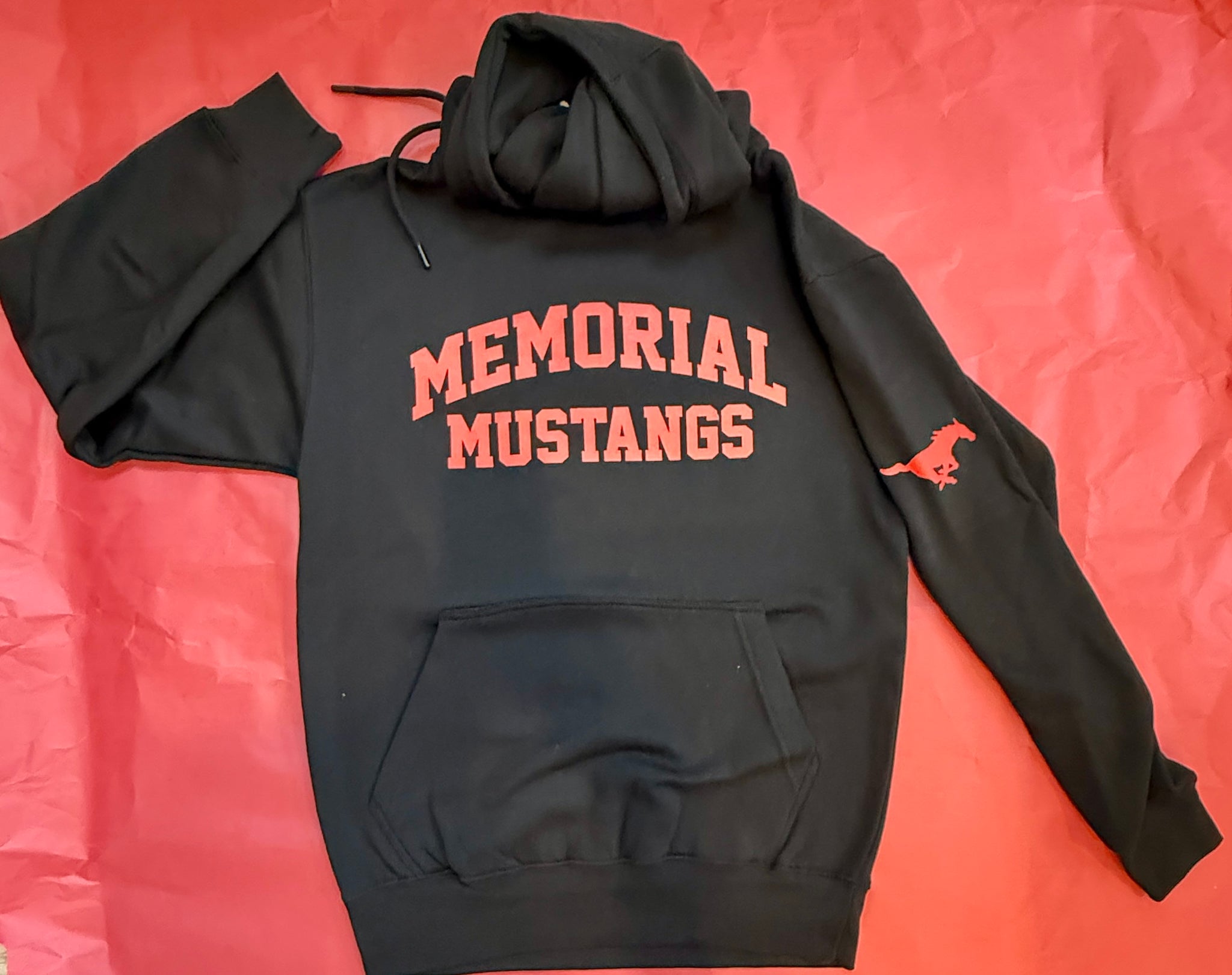 NEW! Black version of the classic Memorial Mustangs hoodie sweatshirt