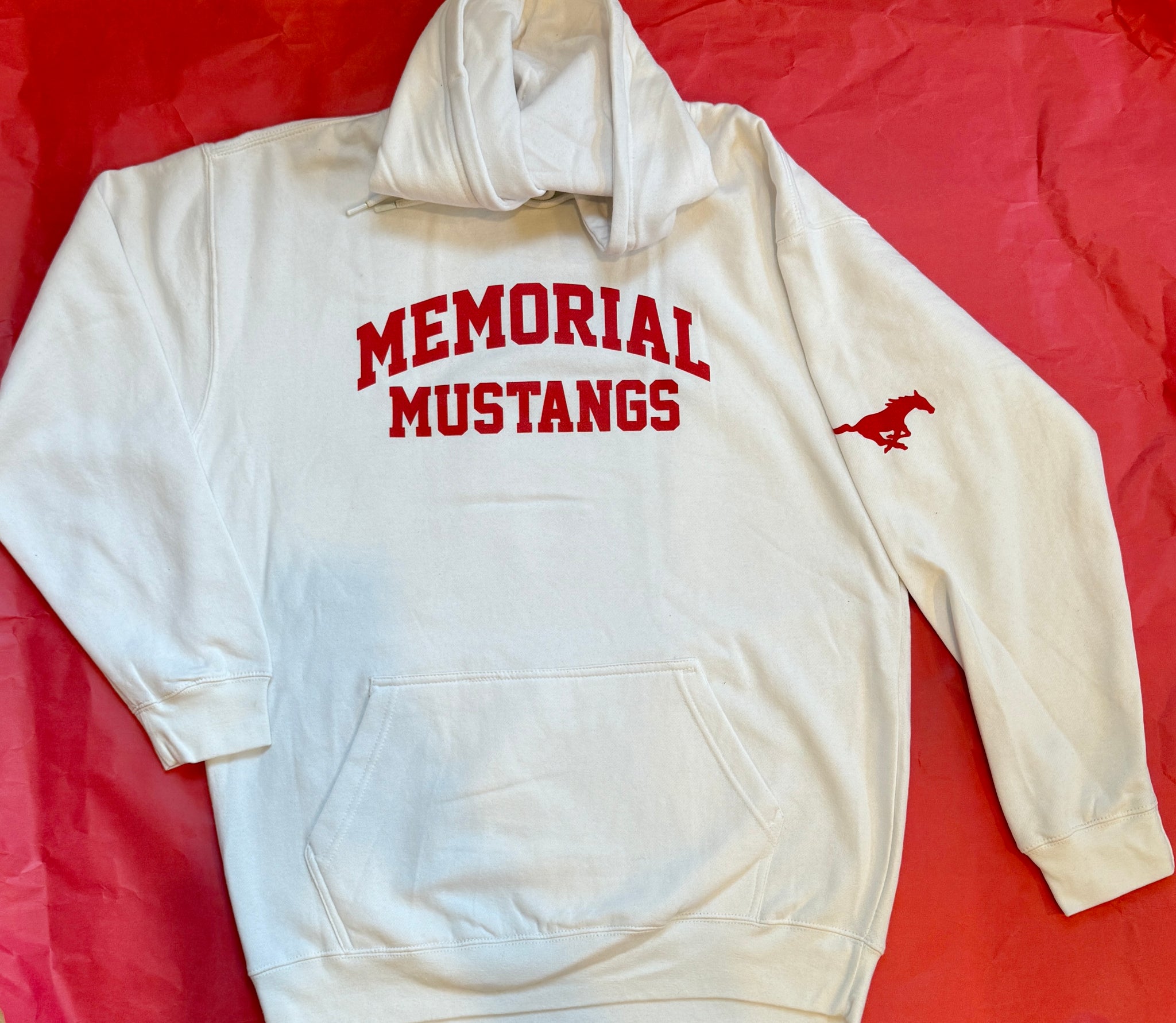 NEW! White version of the classic Memorial Mustangs hoodie sweatshirt